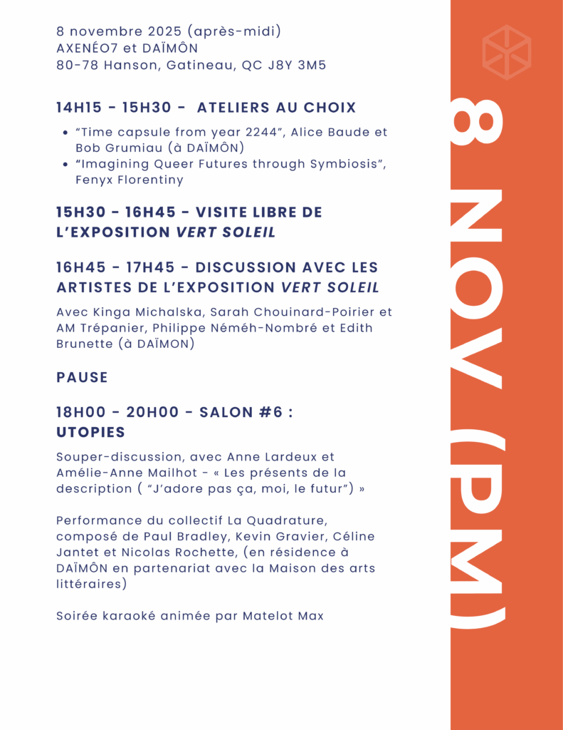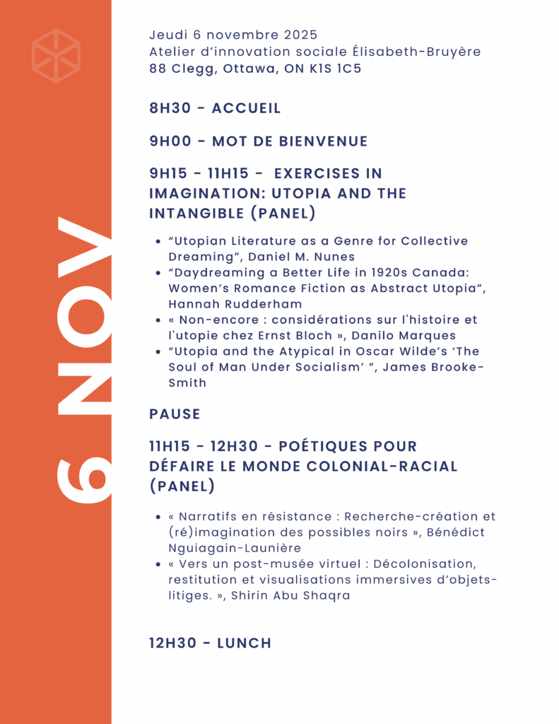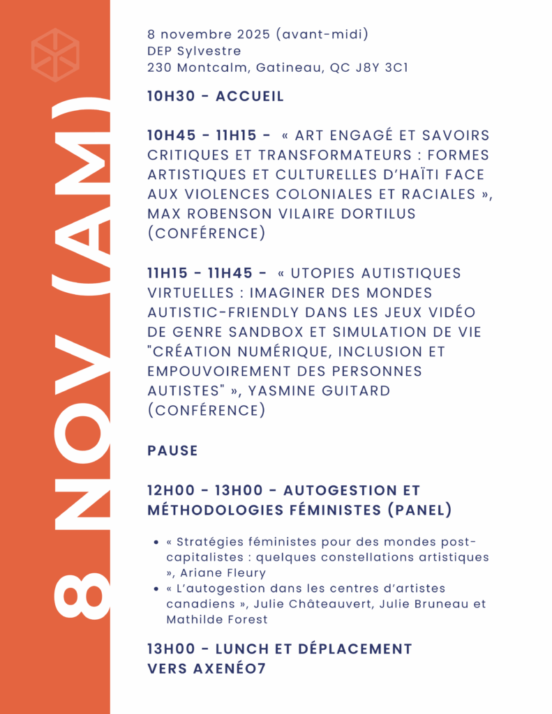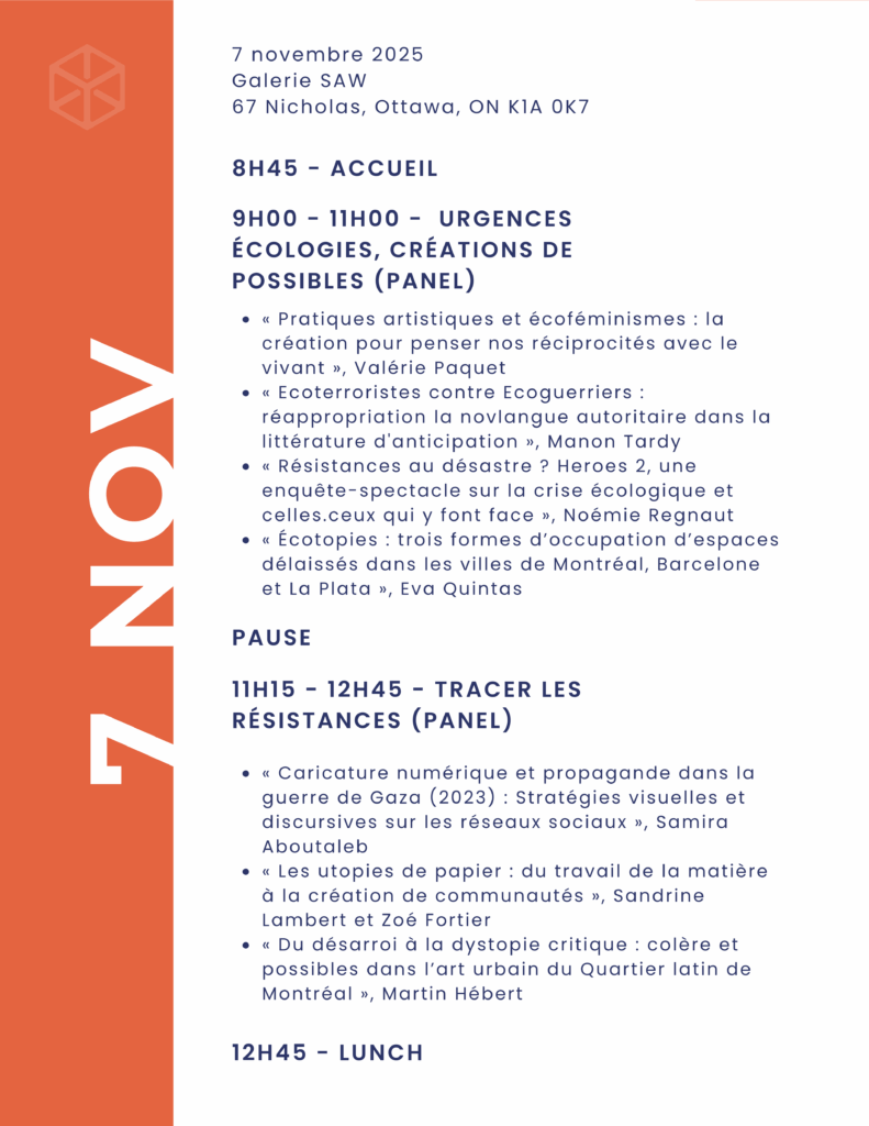 This international conference will take place on November 6, 7, and 8, 2025, at four venues in the Ottawa-Gatineau region: the Mauril-Bélanger Social Innovation Workshop (Saint Paul University), the SAW Gallery, AXENÉO7, and L’espace DEP Sylvestre.