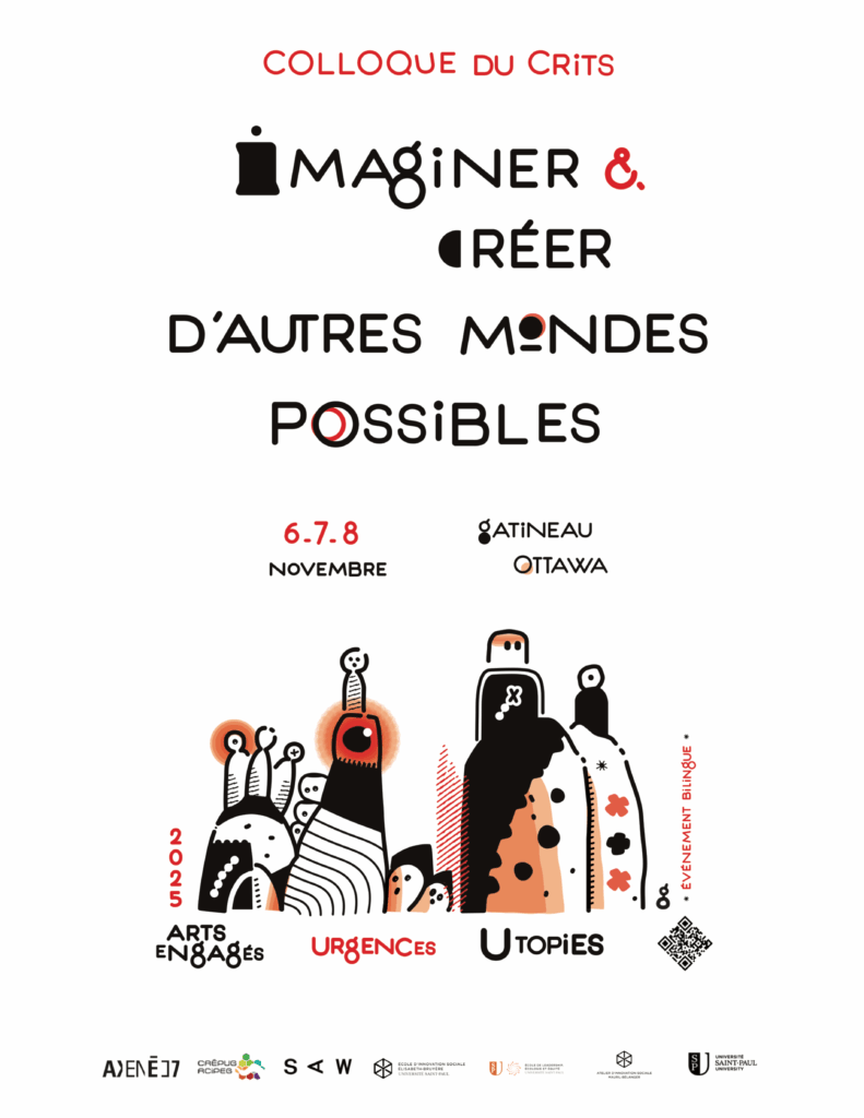 Ce colloque international se déroulera les 6, 7 et 8 novembre 2025, dans quatre lieux de la région Ottawa-Gatineau : l’Atelier d’innovation sociale Mauril-Bélanger (Université Saint-Paul), la Galerie SAW, AXENÉO7 et L’espace DEP Sylvestre.